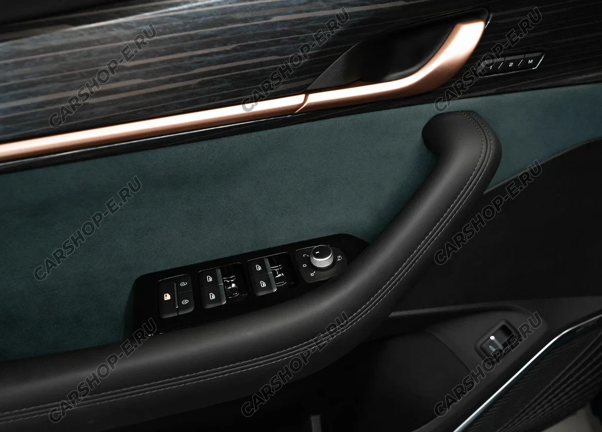- Отделка дверей и боковых панелей мягким текстилем, вставки из искусственной кожи